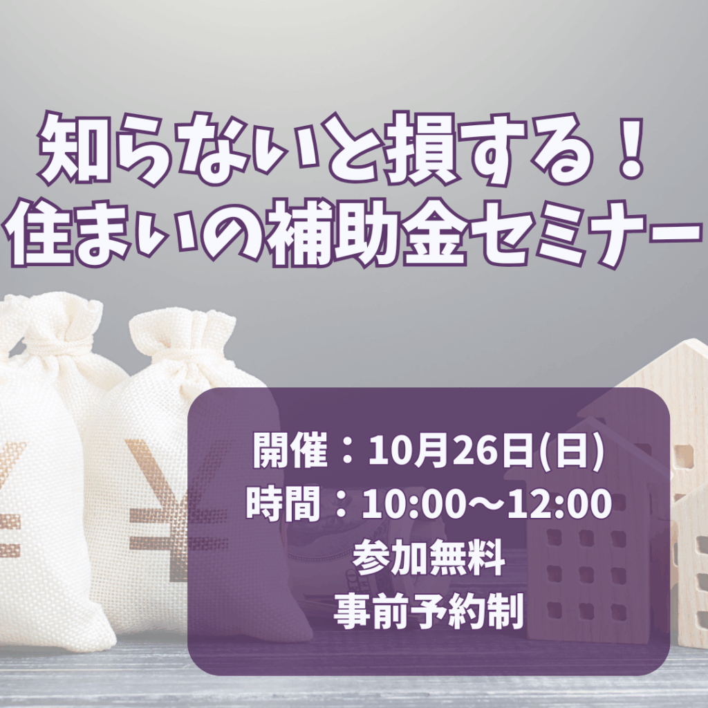 【10/26開催】家の予算が劇的に変わる「補助金」徹底活用術セミナー