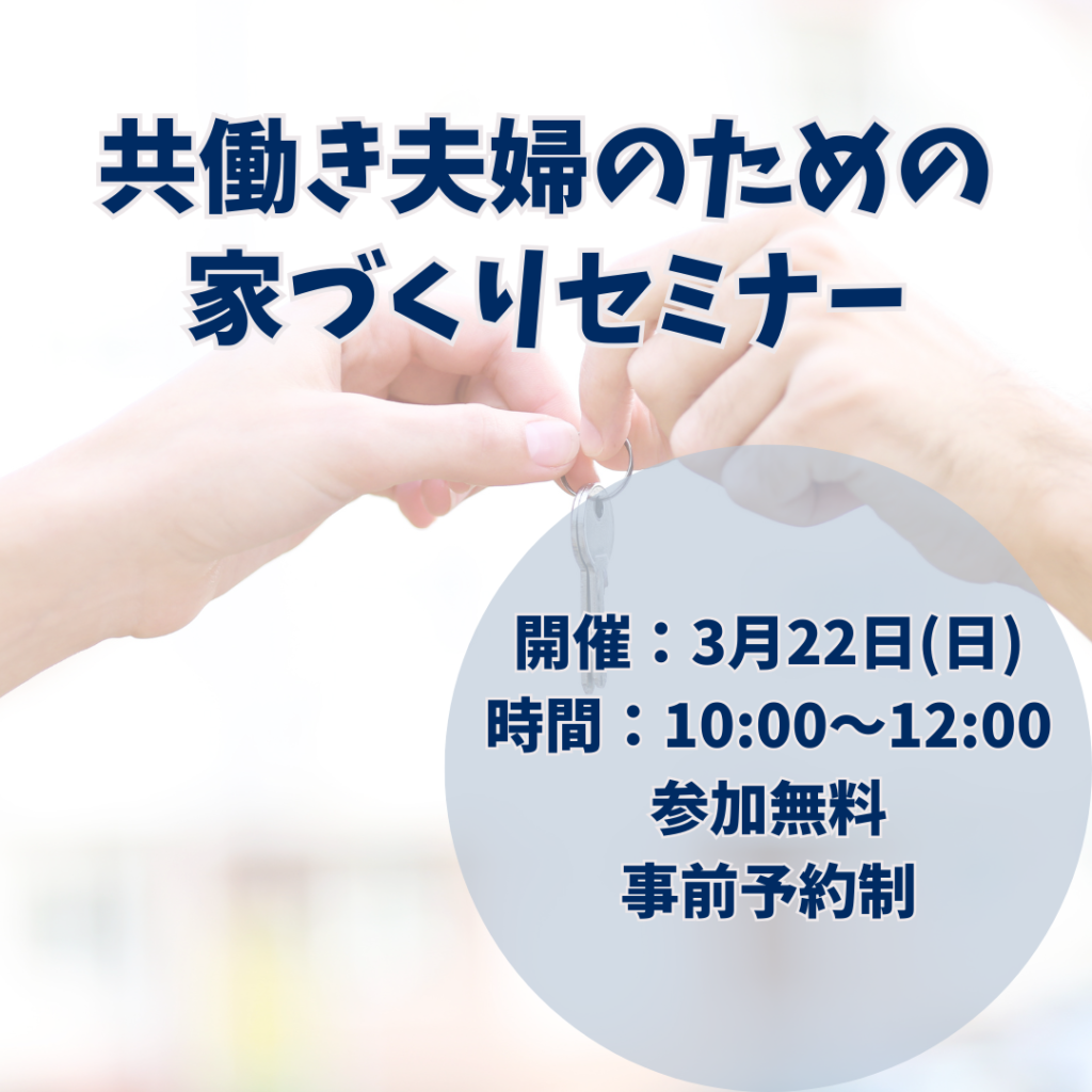 【3/22開催】共働き夫婦のための家づくりセミナー― 家事ラク動線と時短間取りで、毎日がもっと楽になる ―