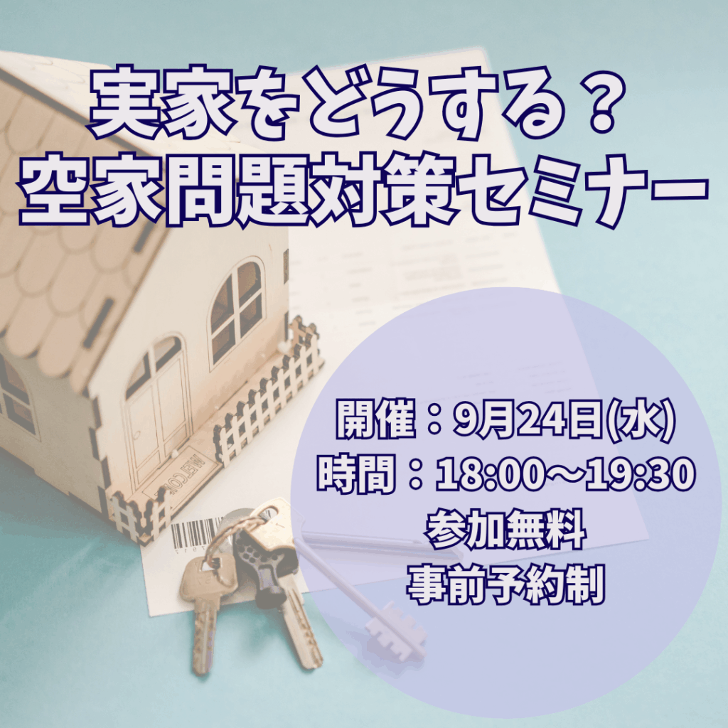 このセミナーは、実家の「終活」を考える親世代の方、そして実家を相続する予定の子世代の方、双方に向けて、空き家を発生させないための生前対策から、相続後の賢い「売却」または「活用」戦略まで、円満な家族関係を維持しつつ、実家を「優良資産」として次世代に引き継ぐための具体的なロードマップを解説します。